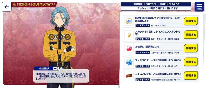 | HiMERUを編成してフェスプロデュースに1回挑戦しよう | ||