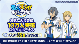 あんスタチャンネルお気に入り登録10万人突破ログインボーナス - 【21/05/16~】