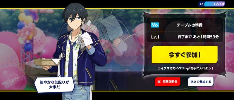 | Vo | テーブルの準備 | Vo | インスタントライブ |