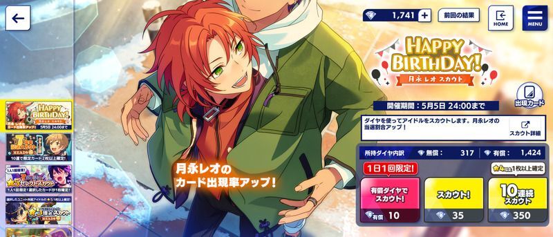 | 60個 | アイドルピース(月永 レオ)×1 アイドルストーリー「ESアイドルからのプレゼント」 |