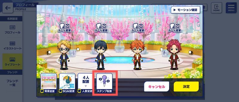 メニュー>フレンド/名刺>名刺設定>ライブシート