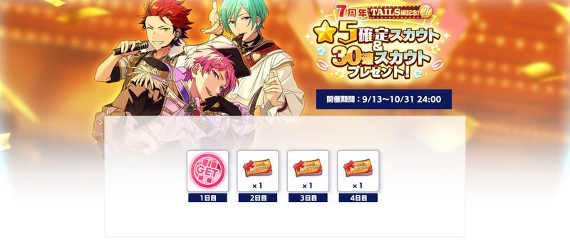 - 7周年TAILS編記念!☆5確定スカウト&30連無料スカウトプレゼント!