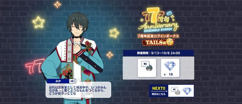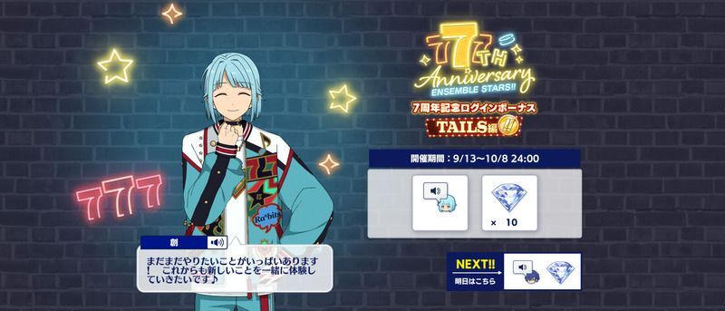 - 7周年TAILS編記念!イベント応援Specialログインボーナス