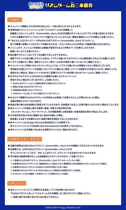 | ② | リズムゲームならあんスタ!!キャンペーンサイトより「リズムゲーム力三本勝負」に挑戦! |