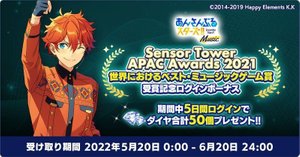 「Sensor Tower APAC Awards 2021 世界におけるベスト・ミュージックゲーム賞」受賞記念ログインボーナス - 【22/05/27~】