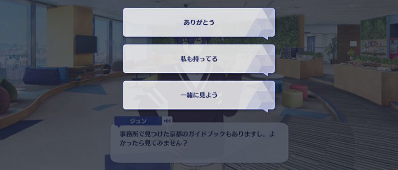 | 1 | あはは、深刻なことじゃありませんよぉ? 京都に行くための準備をしないとって考えてたところでした | ||
