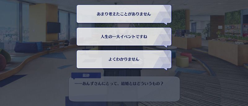 | 2 | ……(名前)さんにとって、結婚とはどういうもの? | ||