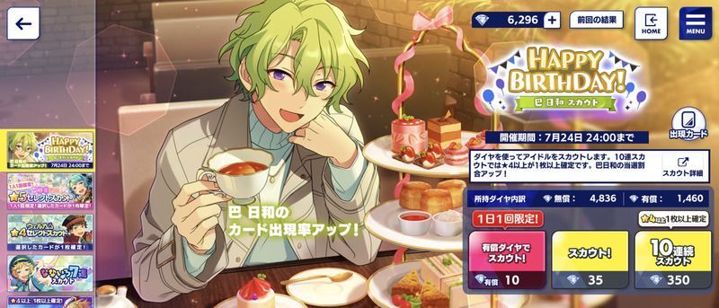 バースデーイベントは『バースデーハート(07月24日)』を使うことで進行できます。
