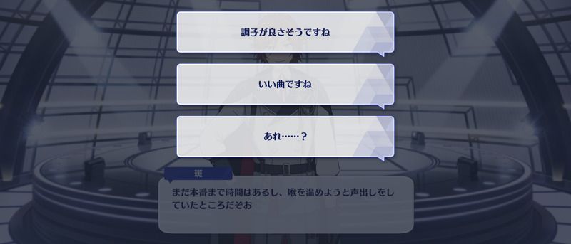 | 1 | まだ本番まで時間はあるし、喉を温めようと声出しをしていたところだぞお | ||