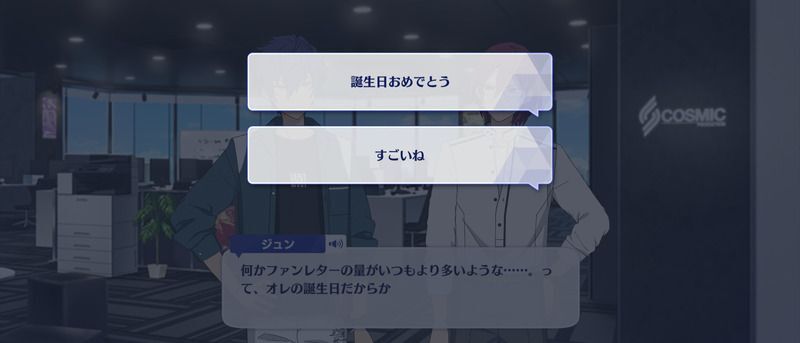 誕生日のお祝い回数に応じて、「誕生日限定のミニトーク」、「誕生日ボイス」、「誕生日ルーム衣装」などのボーナスを手に入れることができます。