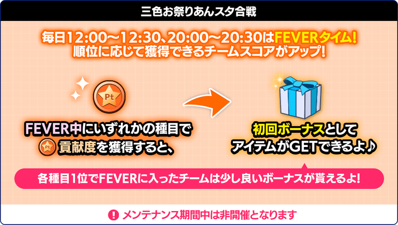 ※サーバーメンテナンス中はFEVERタイムは発生しません。