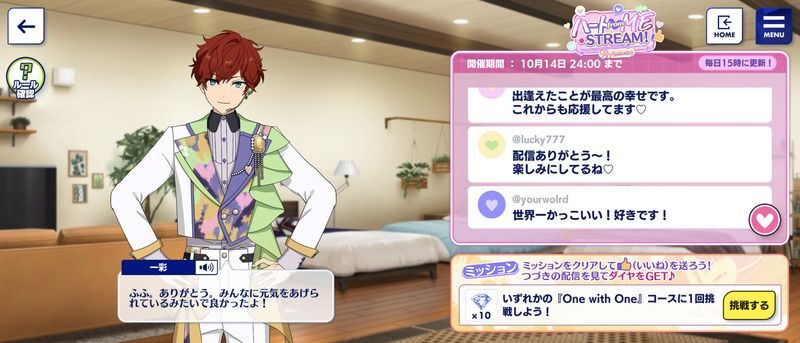 | 報酬 | ・ダイヤ×10 ・スペシャルストーリー「ハート from ME STREAM」の後半ストーリー | |