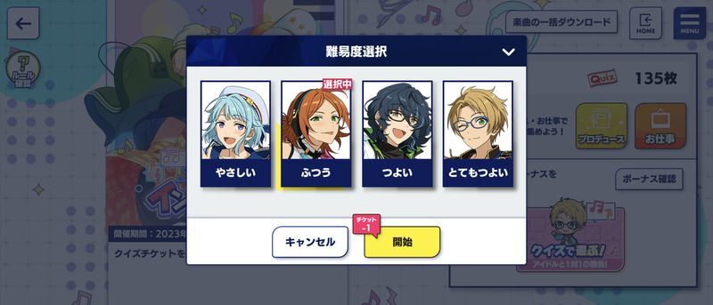 | ①プロデュース・お仕事を行って 「クイズチケット」をGET! | |