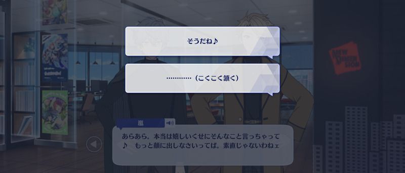 | 3 | あらあら。本当は嬉しいくせにそんなこと言っちゃって♪ もっと顔に出しなさいってば。素直じゃないわねェ♪ | ||