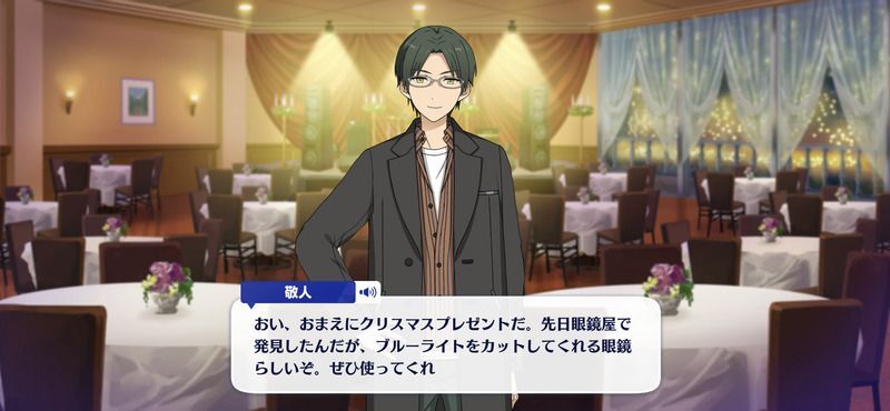 | おい、おまえにクリスマスプレゼントだ。先日眼鏡屋で発見したんだが、ブルーライトをカットしてくれる眼鏡らしいぞ。ぜひ使ってくれ | |