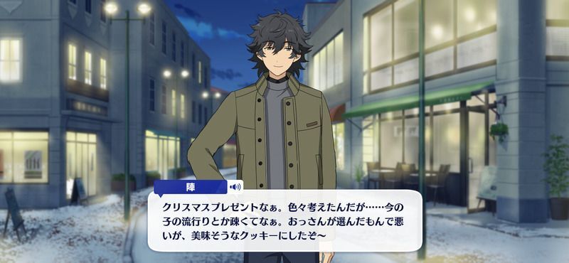 | クリスマスプレゼントなぁ。色々考えたんだが……今の子の流行りとか疎くてなぁ。おっさんが選んだもんで悪いが、美味そうなクッキーにしたぞ〜 | |