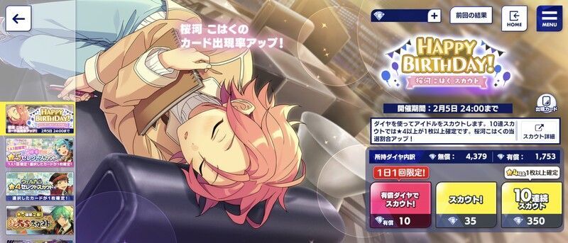 誕生日限定スカウト画面