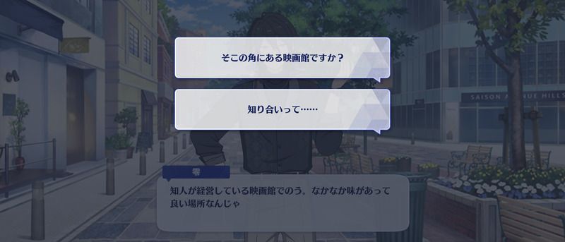 | 1 | 知人が経営している映画館でのう。なかなか味があって良い場所なんじゃ | ||