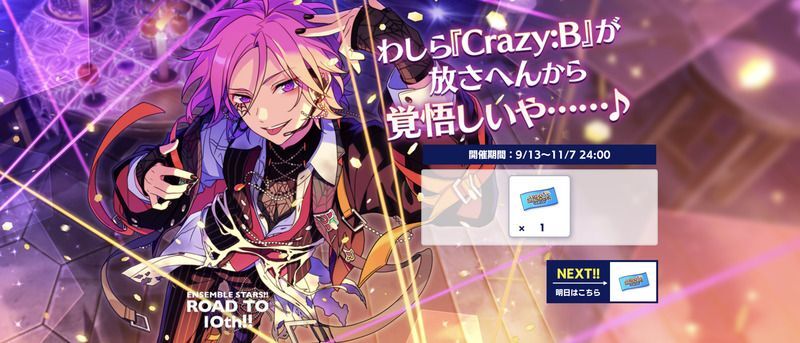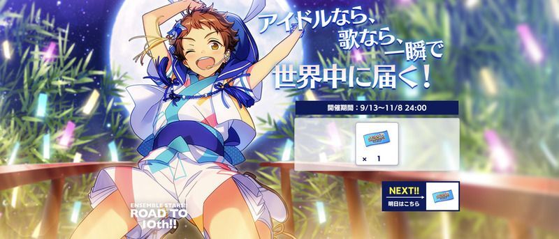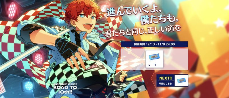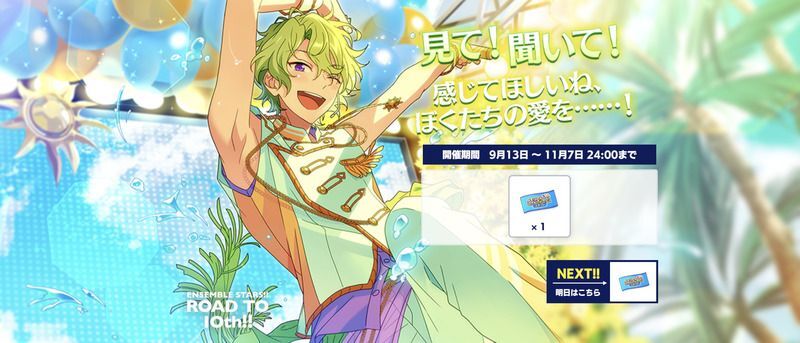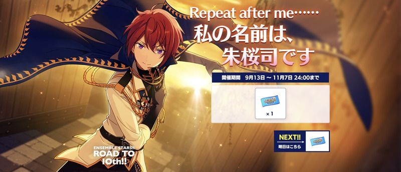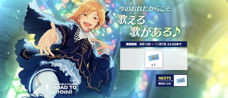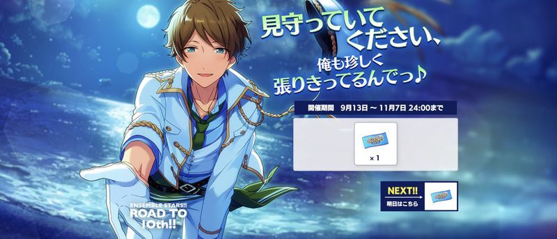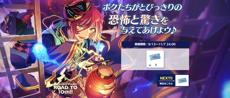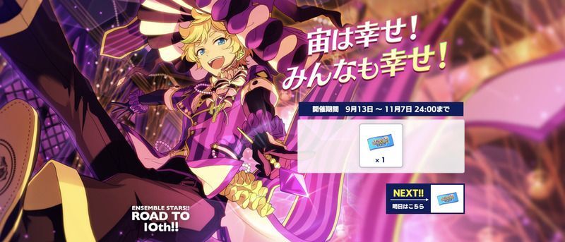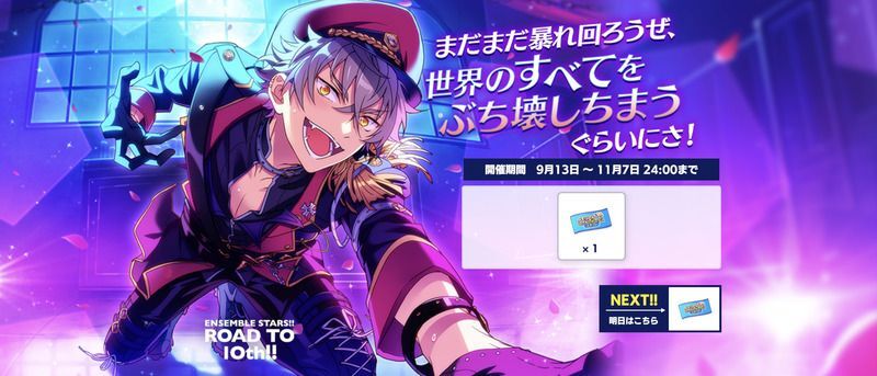 | 09月14日 | メモリアルログインボーナス第一弾スカウトチケット×1 幕開け!夢ノ咲サーカス |
