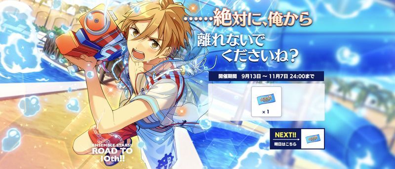 | 09月20日 | メモリアルログインボーナス第一弾スカウトチケット×1 ショット☆弾けてSplashPool! |
