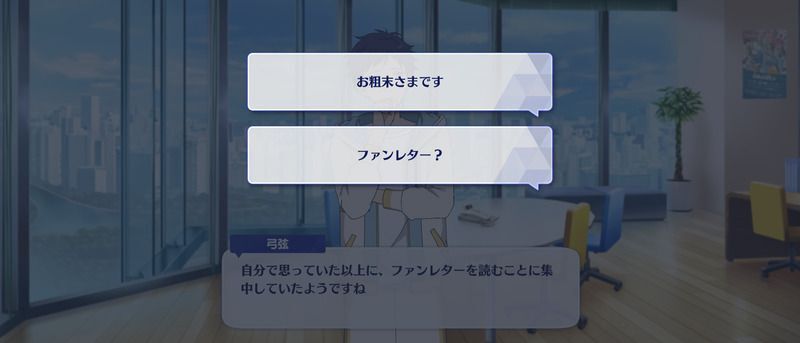 | 2 | 自分で思っていた以上に、ファンレターを読むことに集中していたようですね | ||