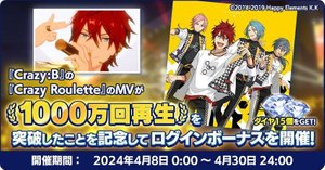 Crazy Roulette』MV1000万回再生突破記念ログインボーナス - 【24/04/09~】