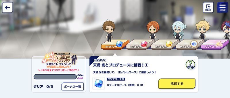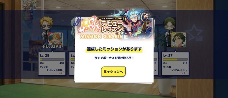 期間限定ミッションをクリアするとデビューレッスンが進行し、育成アイテムなどさまざまなボーナスを獲得できます!