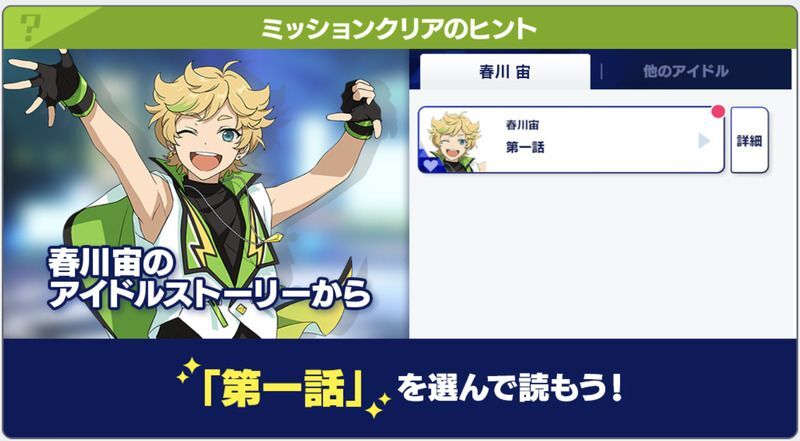 | クリア方法 | 春川 宙のアイドルストーリー「第一話」を読もう! | ||