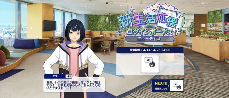 期間中ログインすることで、ボイス「新年度の話題」を獲得できます。