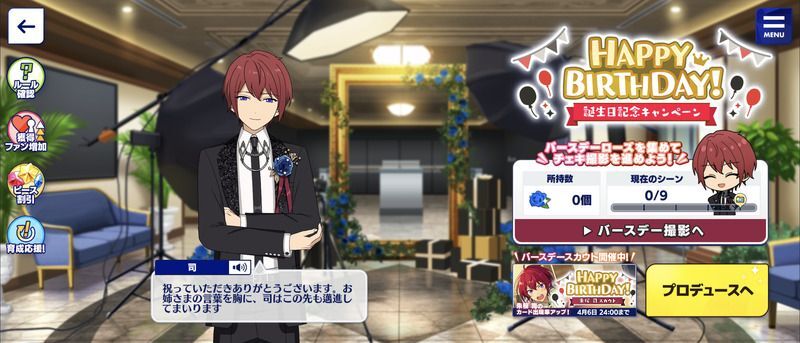 バースデーイベントは『バースデーローズ(04月06日)』を使うことで進行できます。