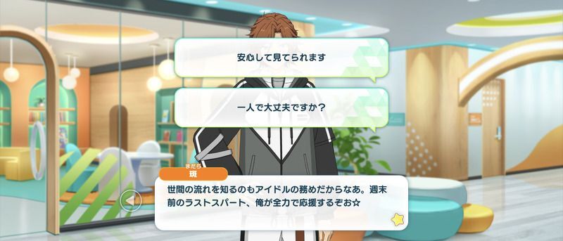 | 1 | 世間の流れを知るのもアイドルの務めだからなあ。週末前のラストスパート、俺が全力で応援するぞお☆ | ||