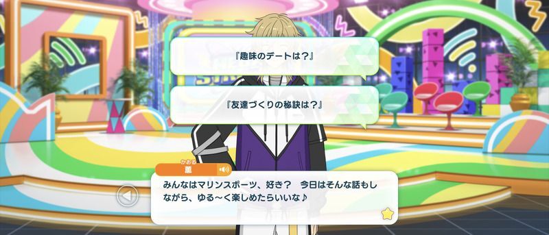 『あんスタBasic(あんさんぶるスターズ!!Basic)』の「土曜放送」のミニトーク(ミニイベント)の選択肢と結果をまとめています。