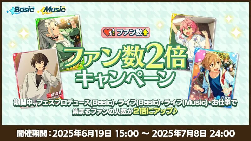 期間中、ライブとお仕事の獲得ファン数が2倍になります。