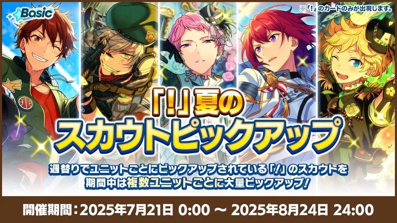 『あんスタBasic(あんさんぶるスターズ!!Basic)』の「夏の「!」モードスカウトキャンペーン2025」詳細まとめです。開催期間や内容など随時更新予定です。是非参考にしてください♪