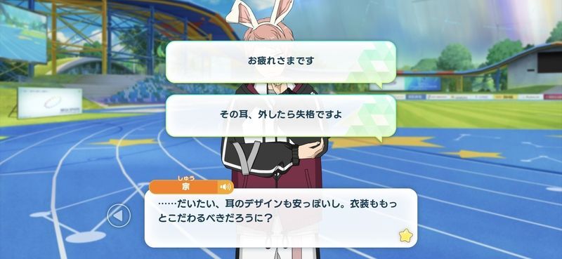 | 1 | ……だいたい、耳のデザインも安っぽいし。衣装ももっとこだわるべきだろうに? | ||