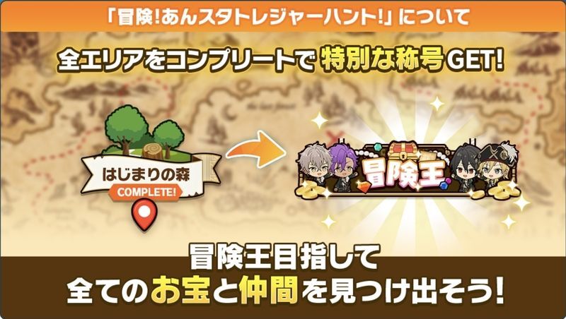 「マイルーム」>画面左「CAMPAIGN」>「冒険!あんスタトレジャーハント!」
