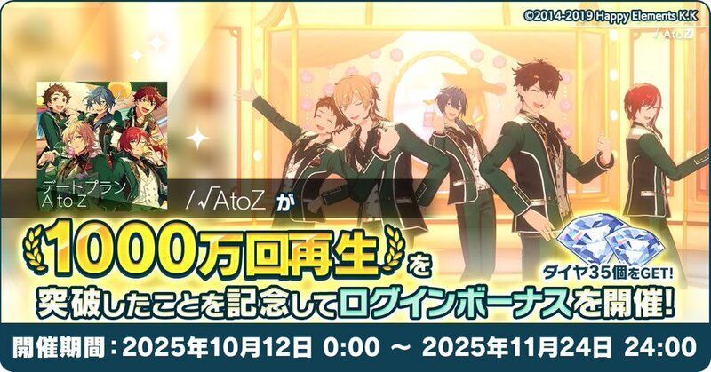 【あんスタBasic】『デートプランA to Z』MV1000万回再生突破記念ログインボーナス