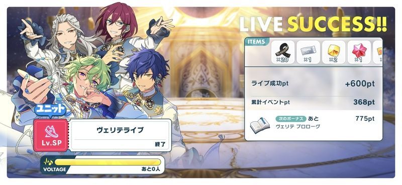 なお、「ヴェリテリボン」のドロップ数はライブの種類ごとに3パターンあり、中央値のドロップ率が一番高い傾向があります。
