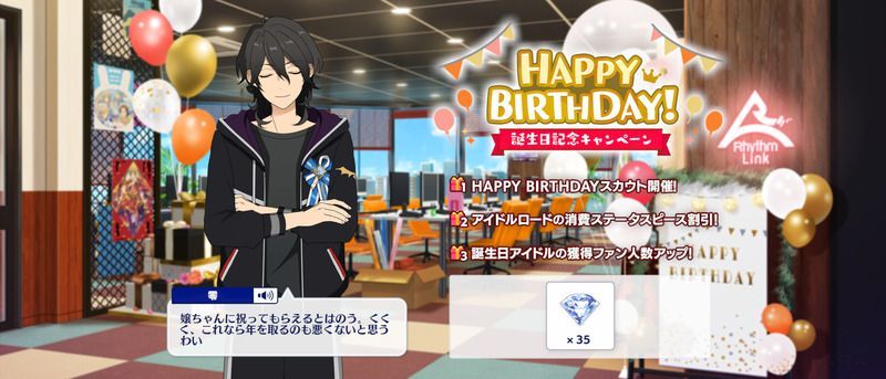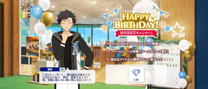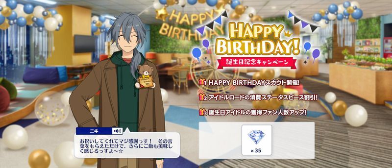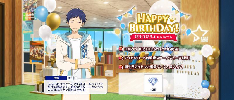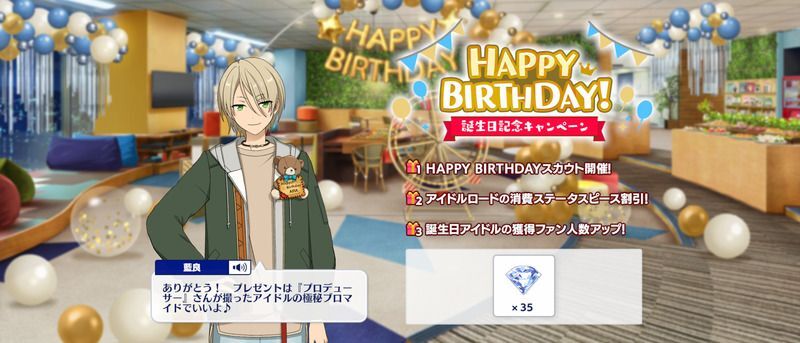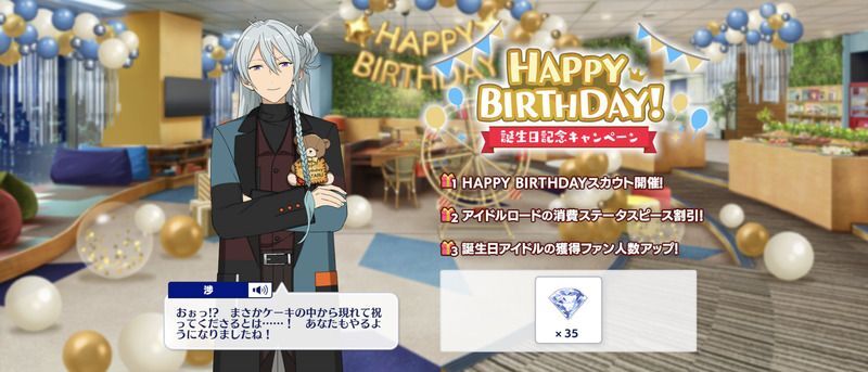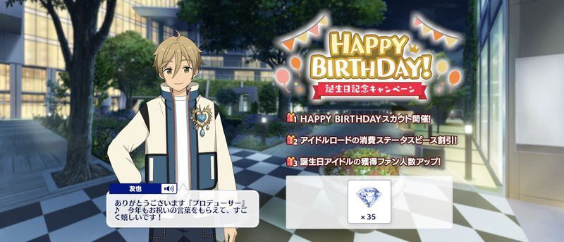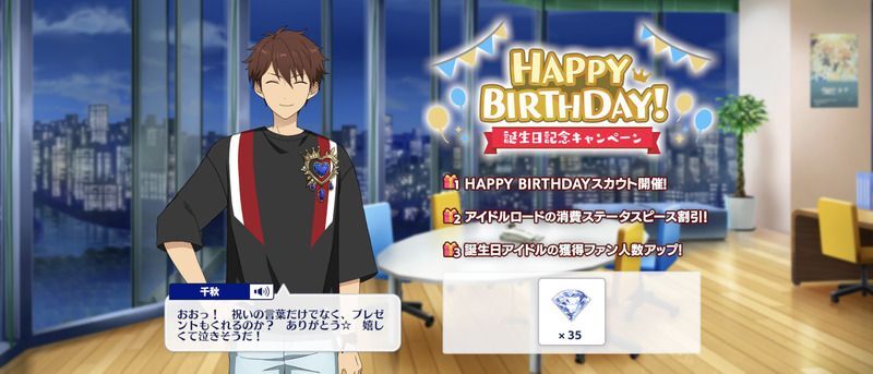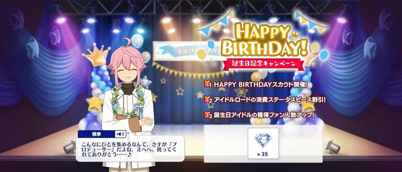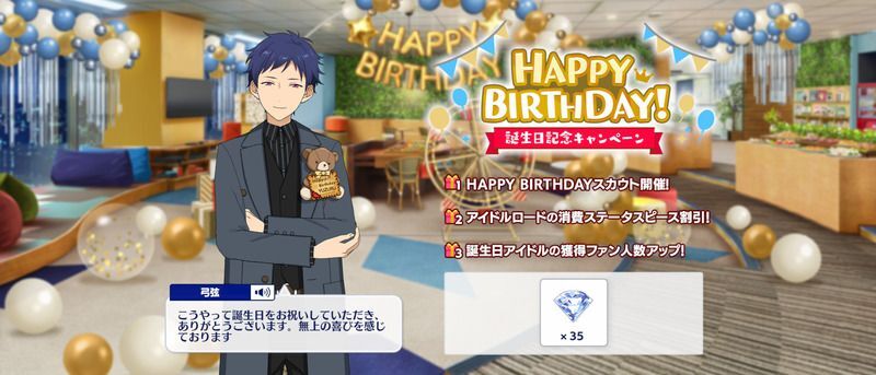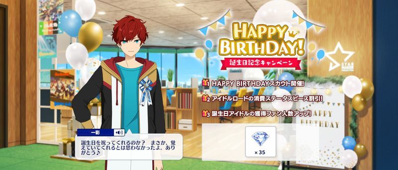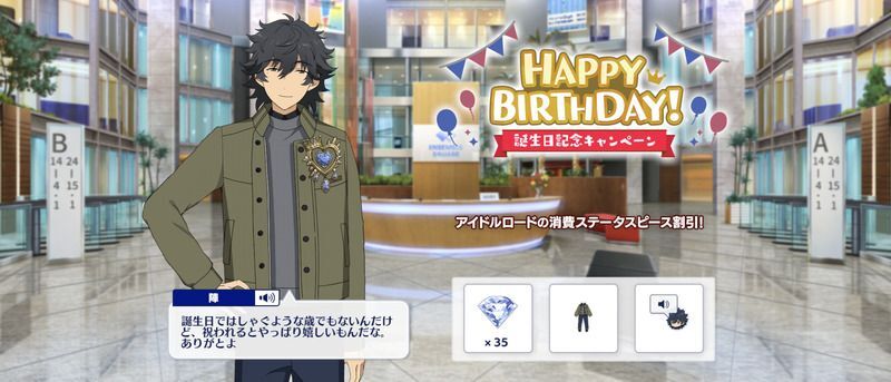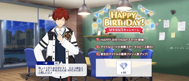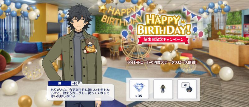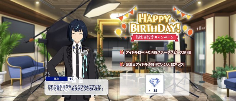 | 俺を祝ってくれるのか。ありがとう。これからも応援してもらえるよう、アイドルとしてがんばろう |