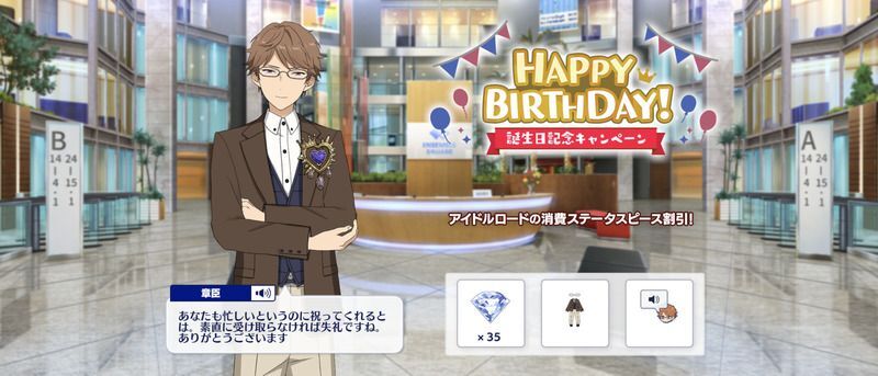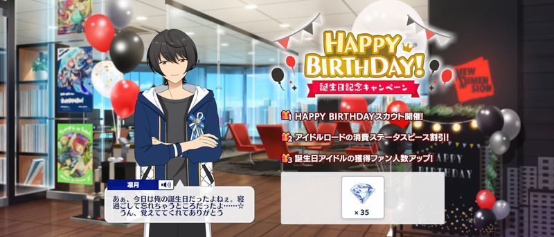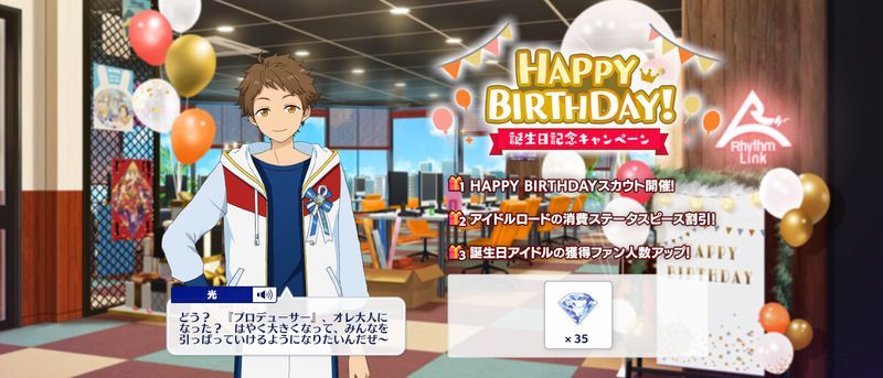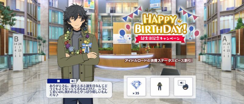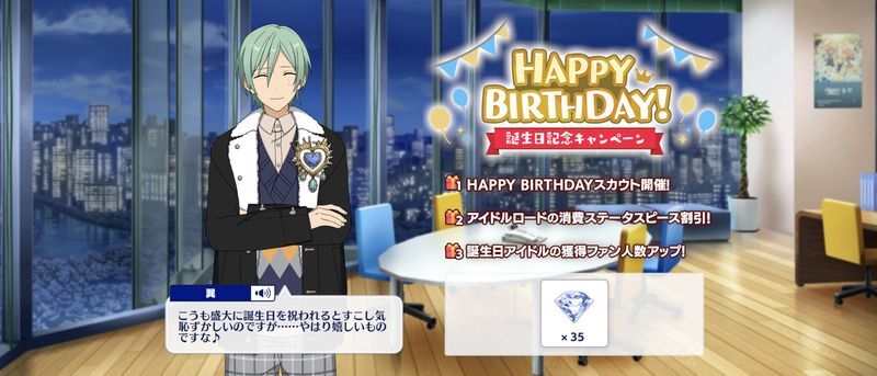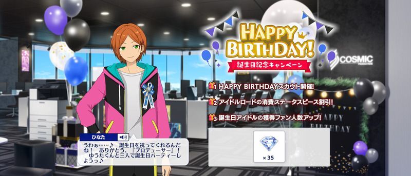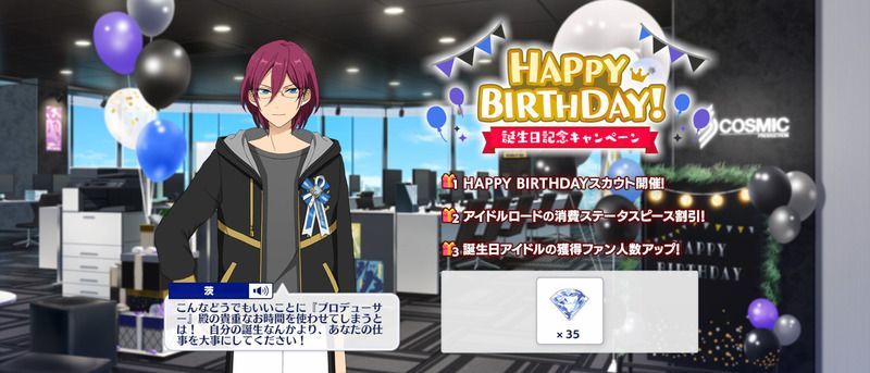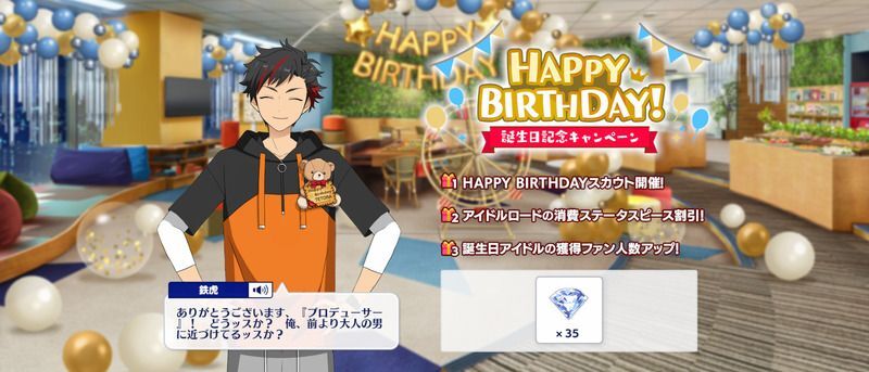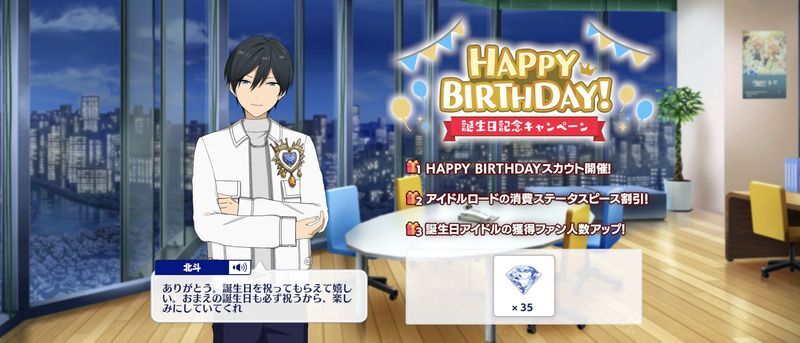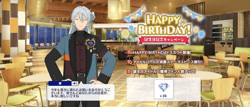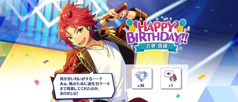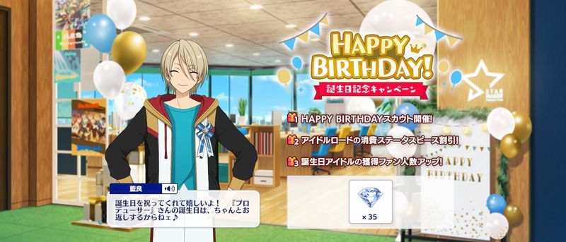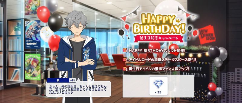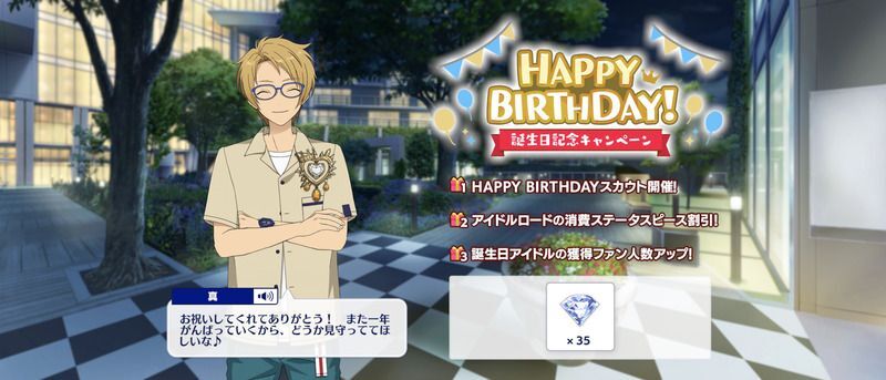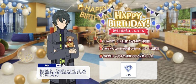 | 俺を祝ってくれるのか。ありがとう。これからも応援してもらえるよう、アイドルとしてがんばろう |