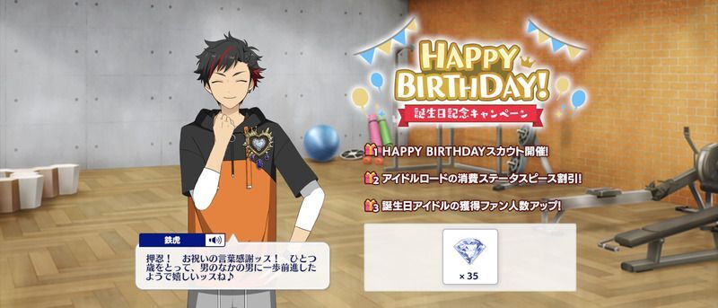 | 『プロデューサー』、俺の誕生日覚えててくれたんスね♪ 押忍、感謝するッス! 俺、年齢に恥じない強い男になるッス~! |