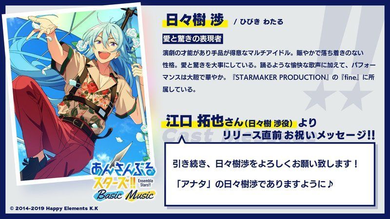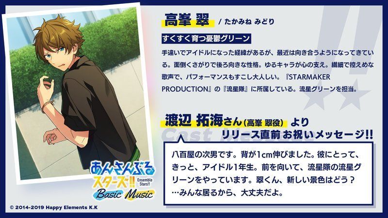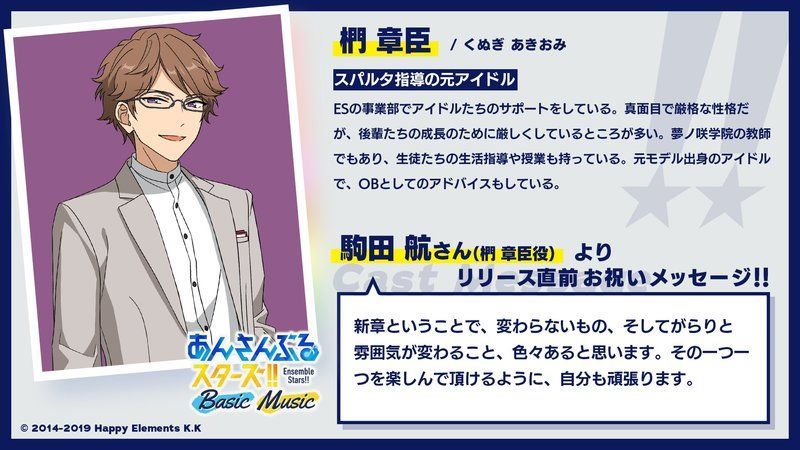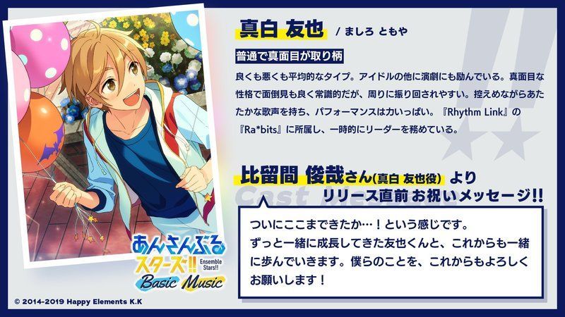当ページは、Happy Elements株式会社「あんさんぶるスターズ!!Music」「あんさんぶるスターズ!!Bright me up!!Music」の画像を利用しております。