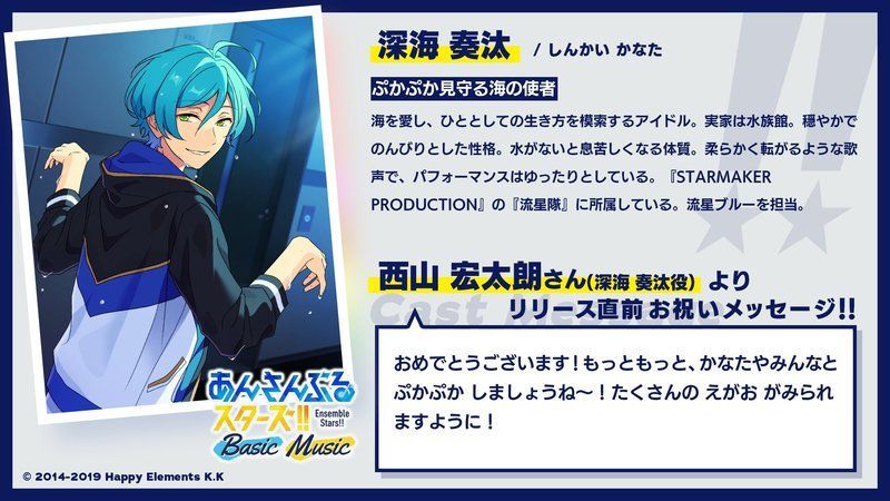 | 新章「あんさんぶるスターズ!!」、そしてアプリ「あんさんぶるスターズ!!Music」リリースおめでとうございます! 新しい景色を、これからも一緒に見続けていきましょう! 引き続き、応援よろしくお願いします! |