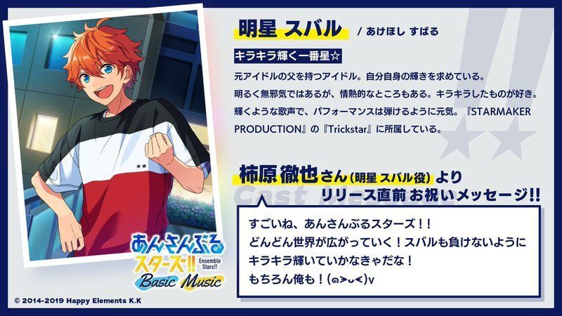 | すごいね、あんさんぶるスターズ!! どんどん世界が広がっていく! スバルも負けないようにキラキラ輝いていかなきゃだな! もちろん俺も! |
