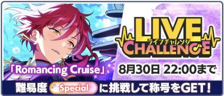 | ライブチャレンジ道場(08月09日) | みんなで目指せ!ゼロ距離花火!~あと100,000m~ | ライブチャレンジ「Romancing Cruise」 |