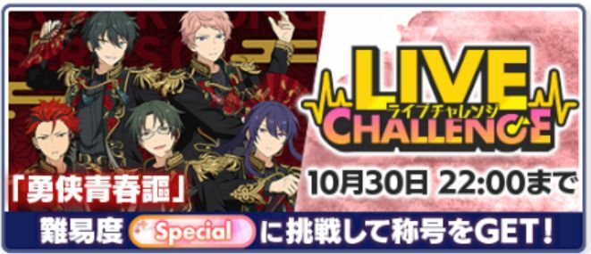| ライブチャレンジ道場(10月09日) | メインストーリー『オーディション編』完結記念!1〜4章読破キャンペーン | ライブチャレンジ道場(10月24日) |