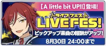| 『A little bit UP!!』登場!ライブフェス! | ライブチャレンジ道場(08月24日) | ES花火大会2024開催記念キャンペーン |
