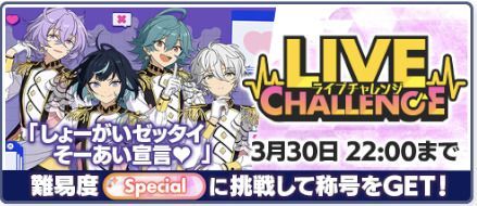| ライブチャレンジ「フュージョン」 | みんなでスーパーライブチャレンジ with CHUNITHM | ライブチャレンジ「しょーがいゼッタイそーあい宣言♥」 |
