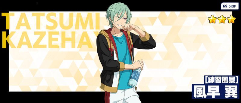 『リズムゲーム版あんスタ(あんさんぶるスターズ!!Music)』☆3「[練習風景]風早 巽」のカード情報ページです。ステータスや追加日、アイドルロード情報などを掲載しています。