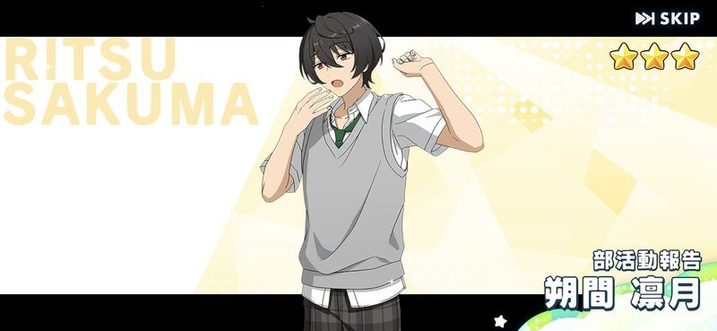 『リズムゲーム版あんスタ(あんさんぶるスターズ!!Music)』☆3「[部活動報告]朔間 凛月」のカード情報ページです。ステータスや追加日、アイドルロード情報などを掲載しています。